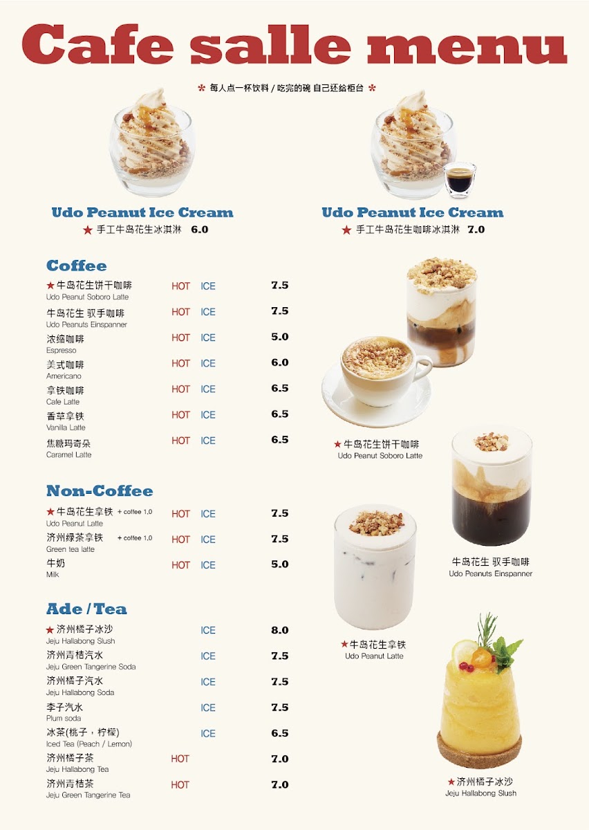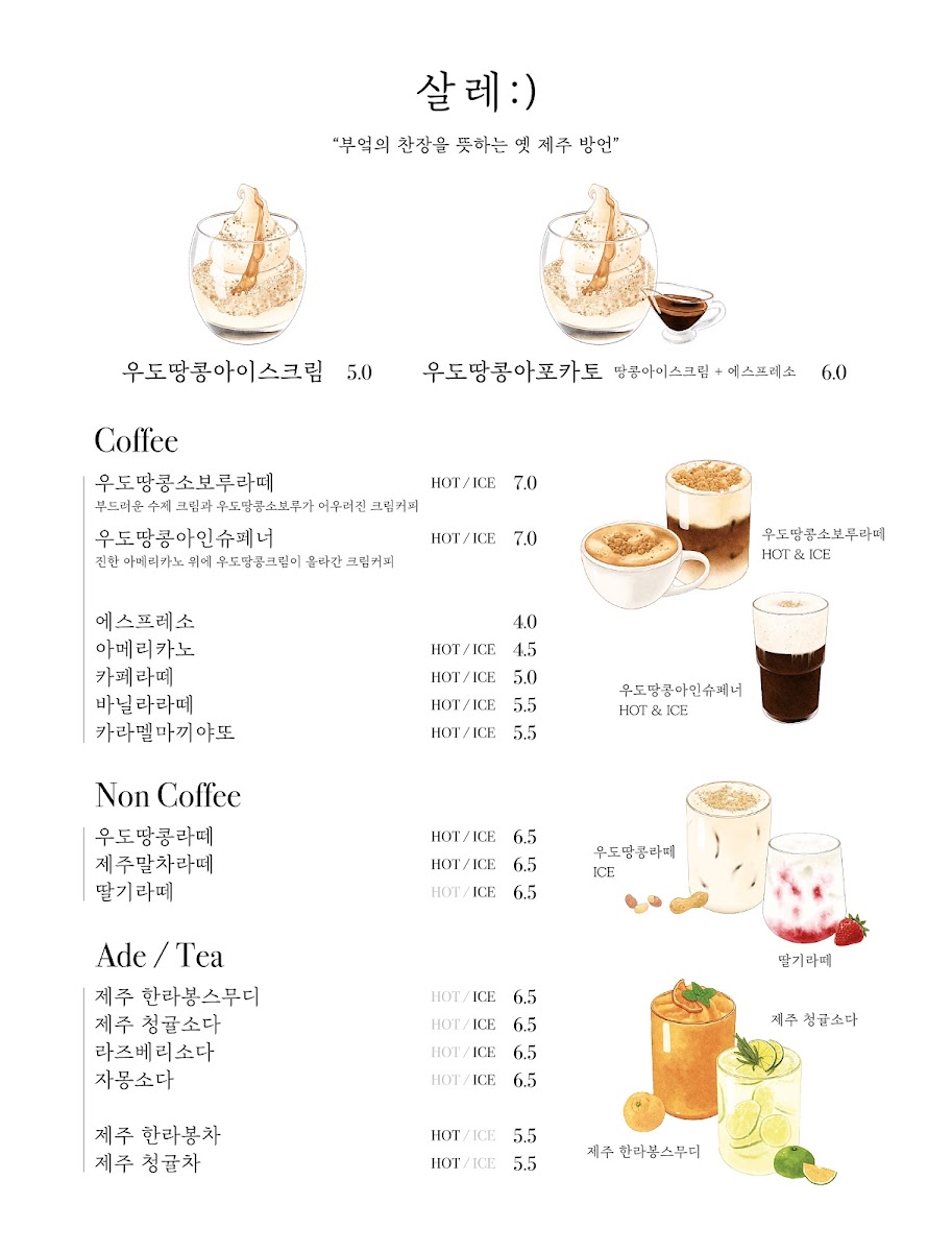- Drinks - Indulge in their unique Udo Peanut latte, an exquisite blend of coffee and the island's signature flavor.